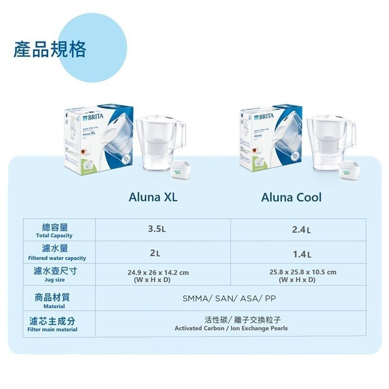 Capacity 2.4L (1.4L filtered water)