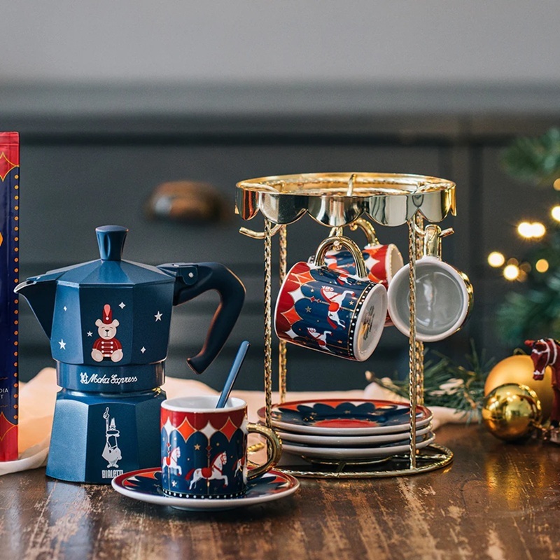 • 套裝包含:4 個杯子、4 個碟子以及一個用來懸掛杯子的掛架